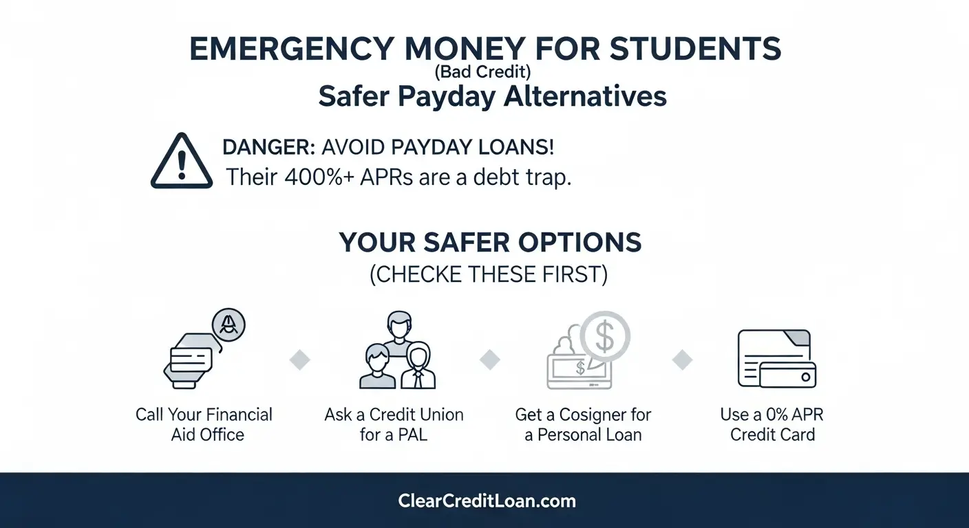 This is a critical moment. Choosing the wrong loan can trap you in a spiral of debt with 400% interest rates. As a financial education platform, ClearCreditLoan is here to protect you from that. We are not a lender. Our mission is to show you the safer payday alternatives that exist for students, even with bad credit. Let’s compare your safest options.