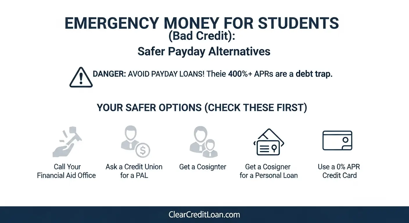 A guide to safer emergency loans for students with bad credit and payday alternatives - ClearCreditLoan Infographic