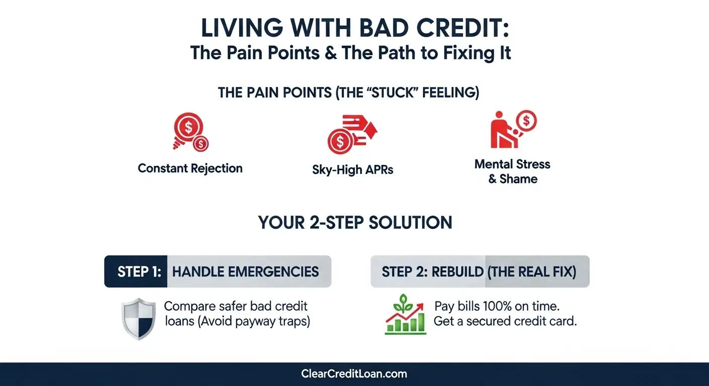 If you’re feeling hopeless about bad credit, you are not alone. As a financial education platform, ClearCreditLoan hears these stories every day. We’re here to validate your frustrations and, more importantly, to show you that there is a path forward. This isn’t just about finding another loan; it’s about a two-step plan to take back control.